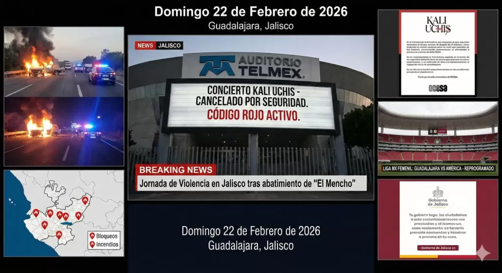 Guadalajara, Jalisco vivió una jornada de incertidumbre y suspensiones el domingo 22 de febrero de 2026, al confirmarse la cancelación de múltiples eventos masivos, incluyendo el esperado concierto de Kali Uchis en el Auditorio Telmex. La decisión fue tomada por las autoridades y promotores en respuesta a una escalada de violencia y una crítica situación de seguridad que se desató en el estado de Jalisco.