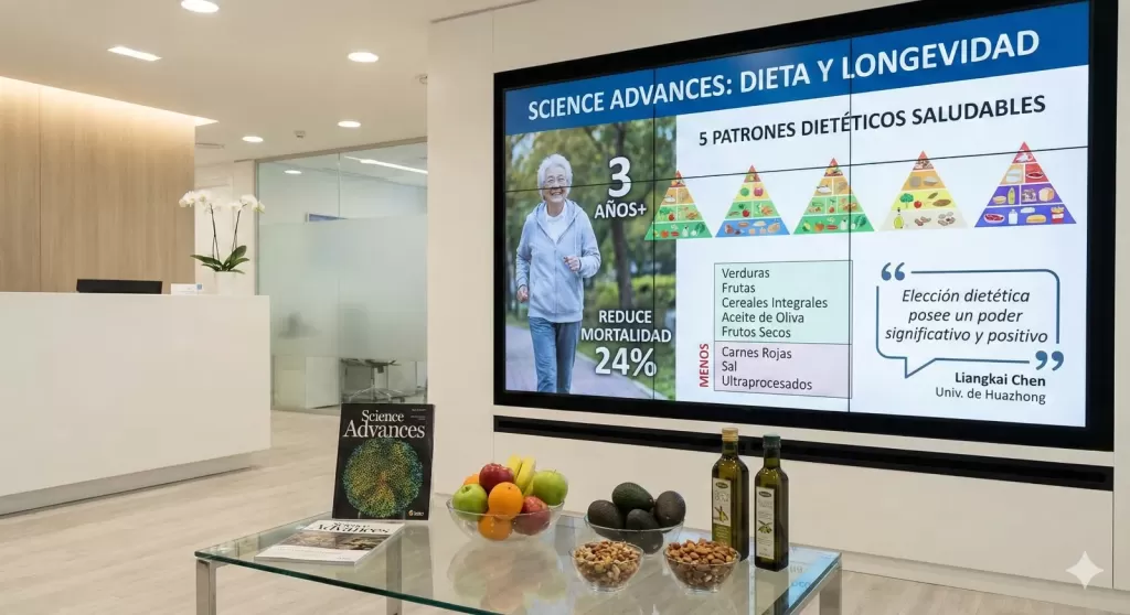 Según la investigación, seguir patrones dietéticos saludables podría reducir la mortalidad hasta en un 24%, lo que se traduce en una ganancia de hasta tres años de vida para una persona de 45 años. Este hallazgo subraya la profunda interconexión entre lo que comemos y nuestra longevidad, confirmando que la dieta no solo previene enfermedades, sino que activa mecanismos protectores que favorecen un envejecimiento saludable.