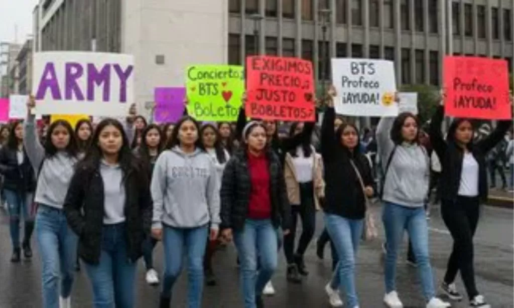 Fans de BTS (ARMY) marchan en CDMX el 19 de enero de 2026 exigiendo transparencia en la venta de boletos para sus conciertos de mayo. Demandan precios claros, mapas de asientos y rechazan tarifas dinámicas. Profeco ya investiga miles de quejas.