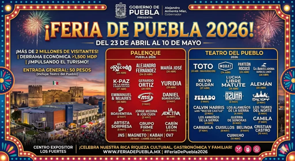 La Feria de Puebla 2026 no solo destacará por su elenco musical, sino también por su amplia oferta cultural, gastronómica y de entretenimiento familiar, buscando celebrar la riqueza de Puebla y posicionarla como un destino turístico clave.
