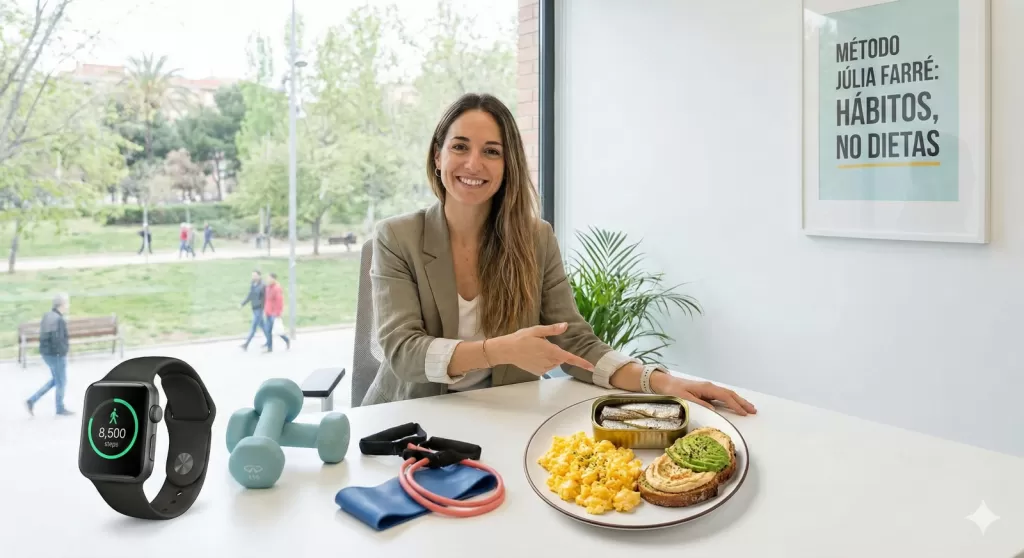 Contrario a la creencia popular de que para perder peso es indispensable un ejercicio físico intenso y estructurado en gimnasios, Júlia Farré destaca la importancia de la actividad física más accesible y natural: caminar. “Para perder peso, en primer lugar, aconsejaría que nos moviéramos más en el día a día. Y no hablo de hacer ejercicio o de hacer deporte, hablo de caminar los famosos 10.000 pasos”, asegura la nutricionista. Aunque la cifra mítica de 10.000 pasos ha sido un estándar, la ciencia actual sugiere que beneficios significativos para la quema calórica y la salud se obtienen con rangos de entre 7.000 y 8.000 pasos diarios.