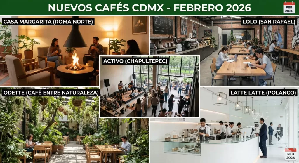 Descubre 5 nuevos cafés en CDMX para febrero 2026: Casa Margarita, Lolo, Activo, Odette y Latte Latte. Explora propuestas frescas, ambientes únicos y café de especialidad en Roma, San Rafael, Chapultepec y Polanco. ¡Visítalos ya!