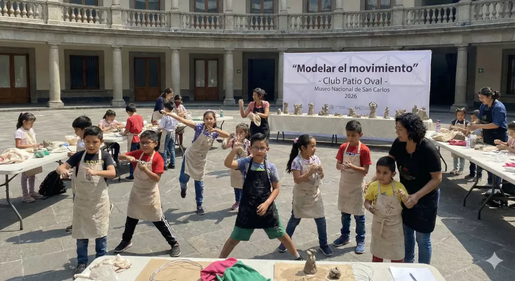 El Museo Nacional de San Carlos en CDMX lanza 'Modelar el movimiento', un taller infantil del Club Patio Oval para niños de 6 a 12 años. Explorarán la escultura y el gesto, fomentando la creatividad y el arte en 2026.