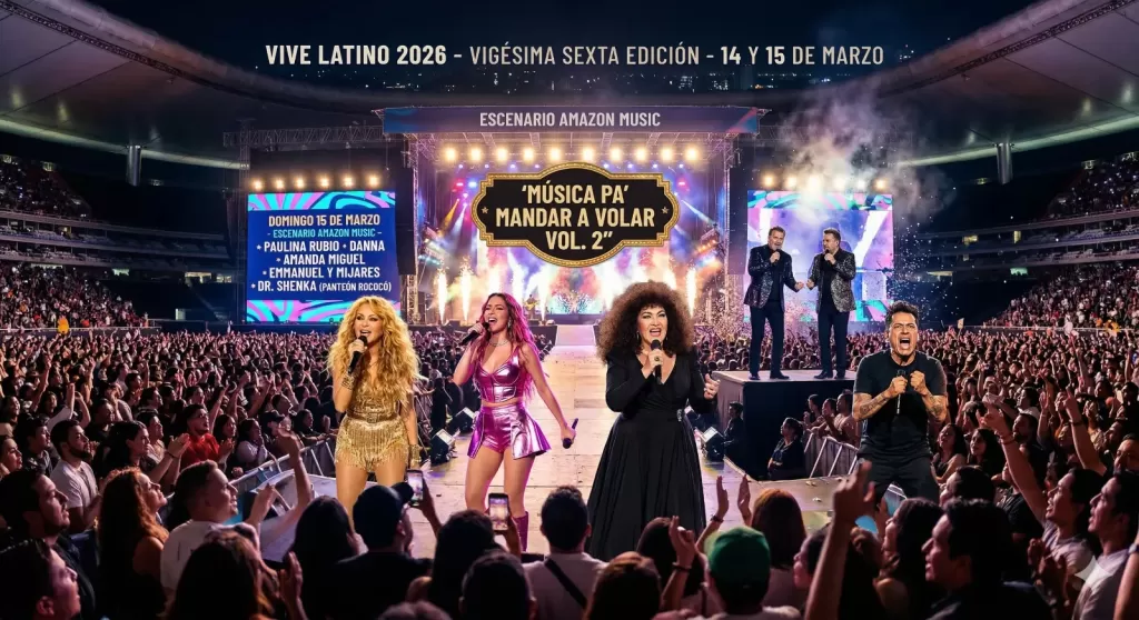 Vive Latino 2026 sorprende con la inclusión de Paulina Rubio, Danna y Amanda Miguel en 'Música Pa' Mandar A Volar Vol. 2'. Un espectáculo intergeneracional con Emmanuel, Mijares y Dr. Shenka, prometiendo éxitos y emociones.